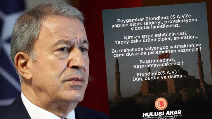 "Peygamber Efendimiz (S.A.V)'e yapılan alçak saldırıyı, provokasyonu şiddetle lanetliyoruz. İçimize sızan sahibinin sesi, Yapay zeka ürünü çipler, aparatlar... Bu mahallede salyangoz satmaktan ve cami duvarına pislemekten vazgeçin! Başaramadınız, Başaramayacaksınız! Efendimiz(S.A.V)! Dün, bugün ve daima..."