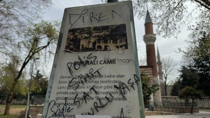 Saraçhane'ye giden protestocuların verdiği zararlar gün yüzüne çıktı. Burmalı Cami'nin tarihinin anlatıldığı pano spreyle boyanarak kullanılmaz hale geldi.