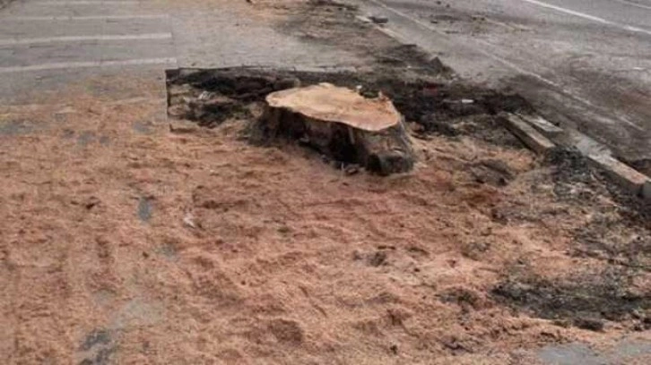 Belediye ekiplerinin kesilen ağaçlardan bazılarının yerine diktiği fidanlardan bir kısmının tutmayarak kuruduğu gözlendi.