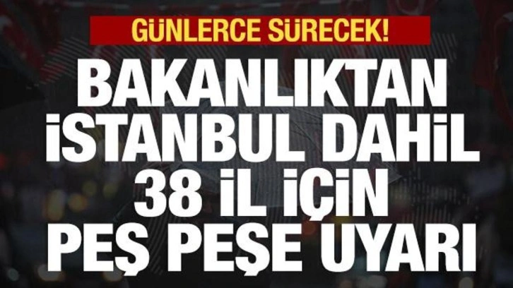 Bakanlığın sosyal medya hesabından yapılan açıklamada, "Meteoroloji Genel Müdürlüğü'nden alınan son bilgilere göre; 26 Mayıs 2025 tarihinde beklenen gök gürültülü sağanak yağış ve fırtına nedeniyle; 38 ilimiz için sarı uyarı verilmiştir. Marmara'nın güneydoğusunda, öğle saatlerinden itibaren İç Ege, Batı Akdeniz'in iç kesimleri, İç Anadolu, Batı Karadeniz'in iç kesimlerinde güney yönlerden kuvvetli rüzgar ve kısa süreli fırtına beklenmektedir. Batı Karadeniz'de beklenen yağışların öğle saatlerinden itibaren Düzce, Zonguldak, Bartın, Bolu, Karabük ve Kastamonu çevrelerinde aralıklı ve yerel olarak kuvvetli olması beklenmektedir. 25 Mayıs Pazar günü akşam saatlerinden itibaren Edirne, Tekirdağ, Kırklareli ve Çanakkale, 26 Mayıs Pazartesi günü ilk saatlerden itibaren İstanbul, Yalova, Balıkesir, Bursa, İzmir ve Manisa, öğle saatlerinden itibaren Kocaeli, Sakarya ve Bilecik çevrelerinde aralıklı ve yerel olarak kuvvetli sağanak ve gök gürültülü sağanak yağış beklenmektedir" denildi.