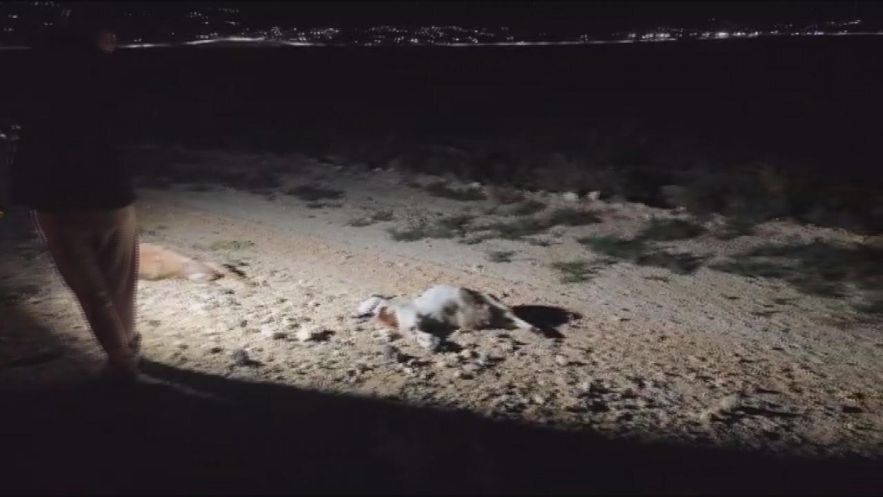 Hatay’da karayolundan geçen küçükbaş hayvan sürüsüne, tır ve hafif ticari araç çarptı. Kazada 37 küçükbaş hayvan telef oldu. Kana bulunan karayolunda telef olan hayvanların parçaları yolu kapattı.