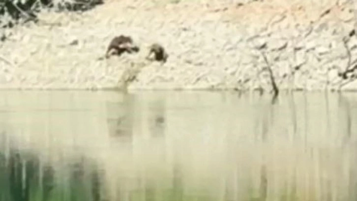 Olay, Artvin merkezde Çoruh Nehri yakınlarında meydana geldi. Görüntülerde iki boz ayının önce birlikte nehre girerek serinlediği, ardından kıyıya çıkar çıkmaz birbirine saldırdığı görülüyor. Kısa süren kavga sonrası ayıların bölgeden uzaklaştı.