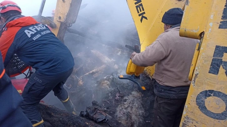 Evin alt katındaki ahırda bulunan yaklaşık 50 küçükbaş hayvan da yangında telef oldu. Ekipler, arama çalışmaları sırasında 10 küçükbaş hayvanı da kurtardı.