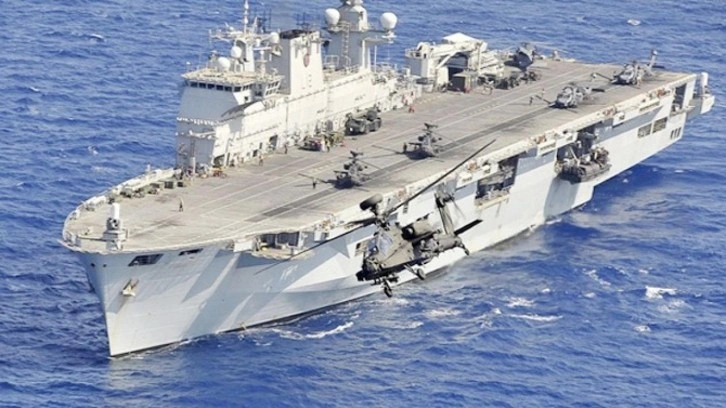 Güney Kıbrıs Rum Yönetimi'nde (GKRY) yayın yapan Havargi gazetesinde yer alan habere göre, İngiliz Kraliyet Donanması'na ait amfibi operasyon gemileri Güney Kıbrıs açıklarına yanaştı.