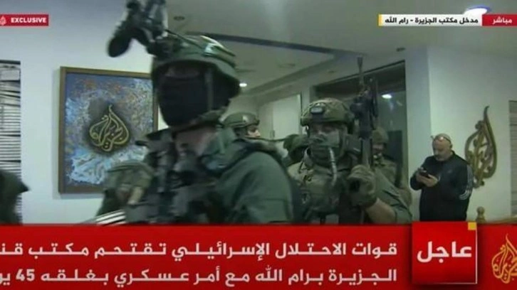İsrail güçleri, işgal altındaki Batı Şeria'nın Ramallah kentinde bulunan El Cezire haber kanalının ofisine baskın düzenleyerek, yayının 45 gün süreyle kapatılmasını emretti.
