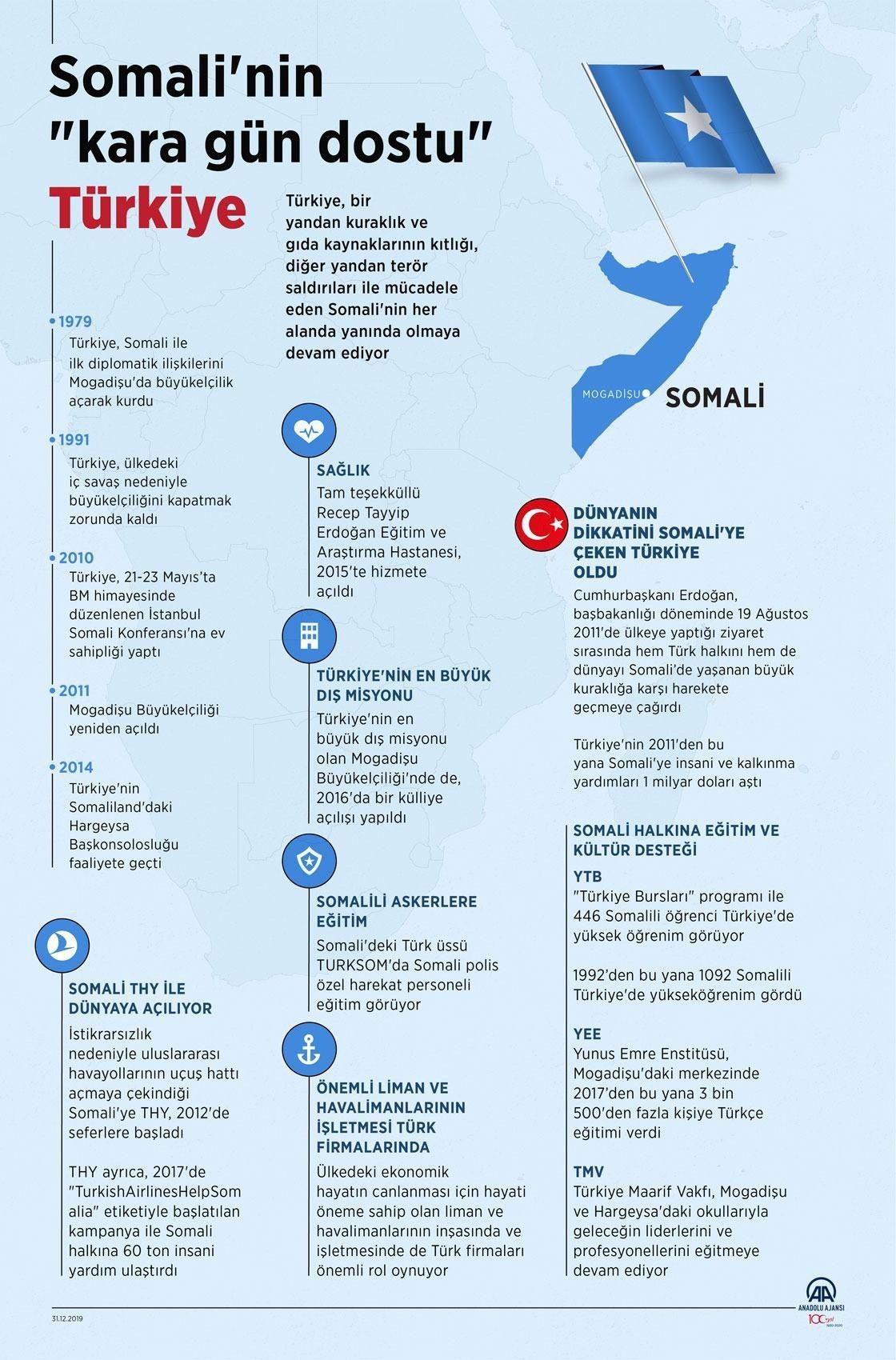 Ankara'nın Somali'de binlerce askeri eğiten bir üs, uzun süreli imtiyazlarla kontrol ettiği bir liman ve havalimanı, Cumhurbaşkanı Erdoğan'ın adını taşıyan bir hastane ve ülkede yarım asır sonra kurulan ilk yabancı banka olan bir Türk devlet bankası aracılığıyla yönetime sızdığı belirtildi.