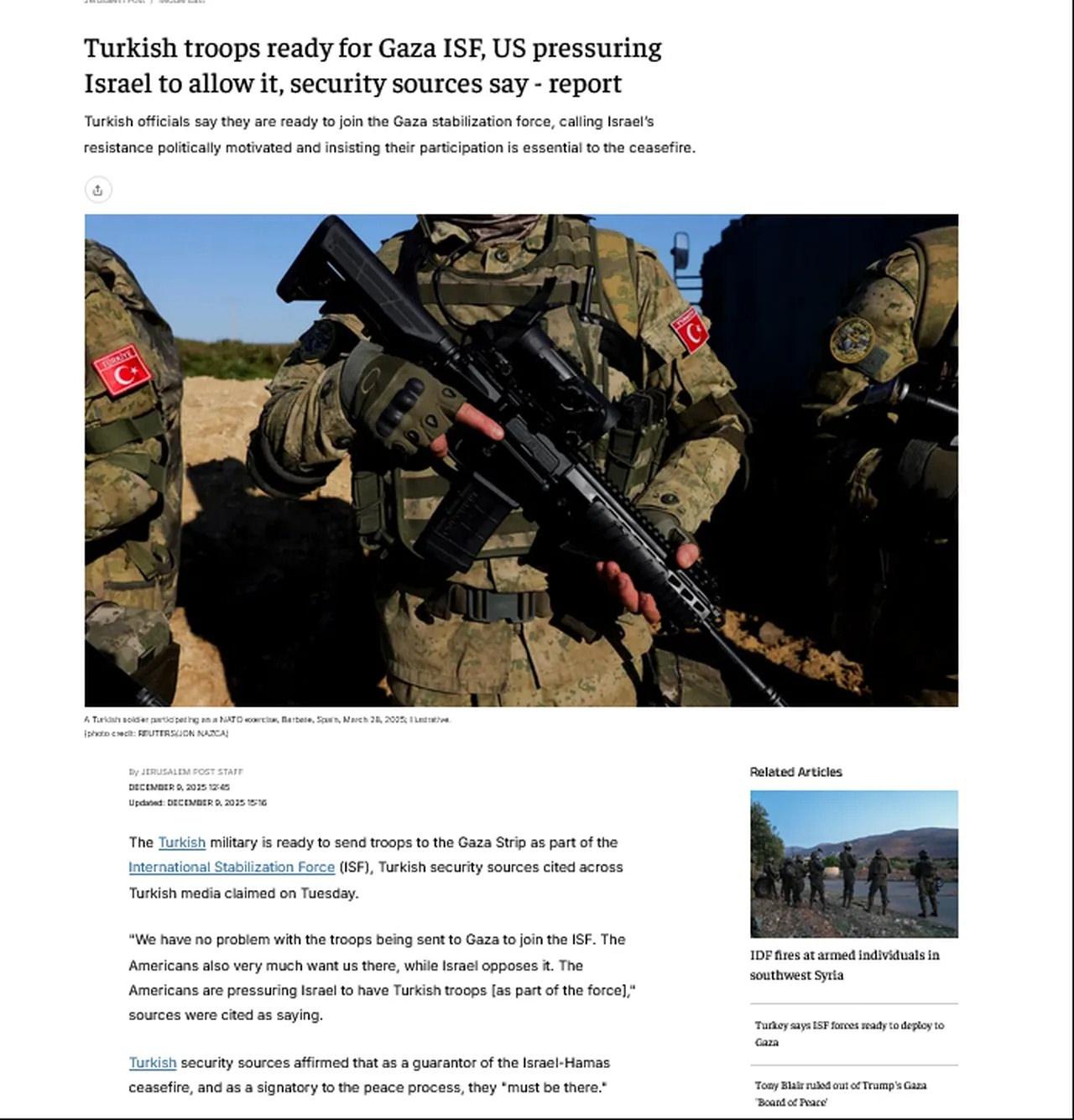 Yazıda, Türkiye büyükelçisi ile ABD’nin Suriye Özel Temsilcisi Tom Barrack’ın değerlendirmelerine yer verildi. Haaretz ve Jeruselam Pos'ta göre, Türkiye’nin Gazze’deki uluslararası güçte kritik rol üstlenmesi hem ABD hem de bölgesel aktörler açısından stratejik bir dönüm noktası anlamına geliyor.