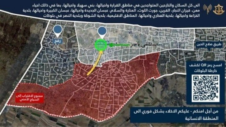 İsrail Ordu Sözcüsü Avichay Adraee, X sosyal medya platformundan paylaştığı haritalı mesajında, Gazze'nin kuzeyinde yer alan Sabra, Rimal, Tel el-Hava ve Derac mahallelerindeki bazı bölgelerin boşaltılmasını istedi.