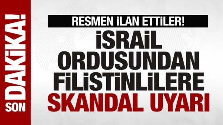 Son dakika Filistin haberleri: Ordu Sözcüsü Avichay Adraee X sosyal medya hesabından yaptığı açıklamada, Han Yunus'un Curt el-Lut, El-Menara, Maan, Kızan en-Neccar, Kızan Ebu Rüşvan, Es-Selam ve El-Haşaş mahalleleri sakinlerine uyarıda bulundu.