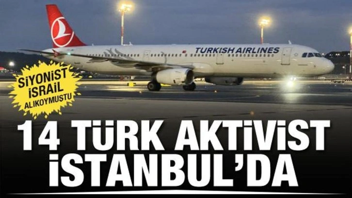 Esir alınan 14 Türk aktivist, Türk Hava Yolları (THY) uçağıyla yurda geri getirildi.