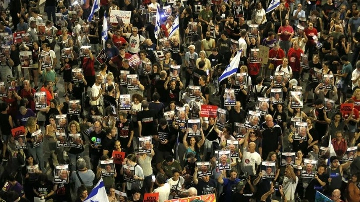 On binlerce İsrailli, ülke genelinde düzenledikleri gösterilerde bir kez daha esir takası anlaşmasının yapılması, Netanyahu başbakanlığındaki hükümetin istifa etmesi ve erken seçimlere gidilmesi yönündeki taleplerini yineledi.