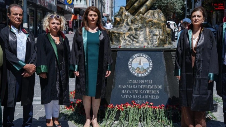 Yapılan basın açıklamasının ardından avukatlar, depremlerde hayatını kaybedenlerin anısına, Avcılar'da bulunan deprem anıtına karanfil bıraktı.