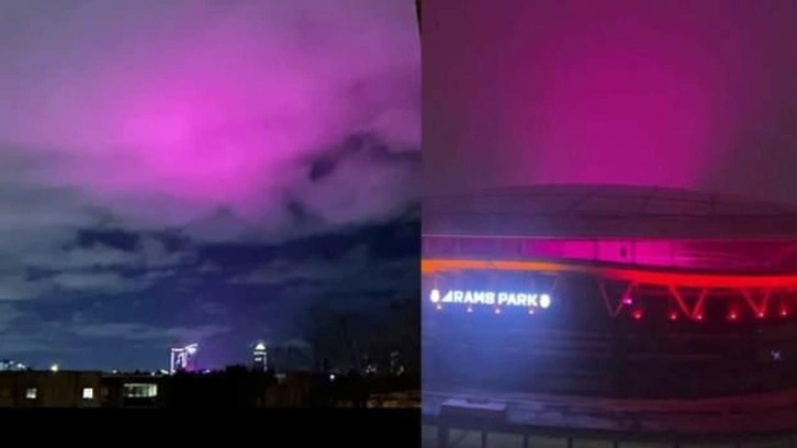 İstanbul'da Kağıthane ve çevre ilçelerde gece saatlerinde gökyüzünde pembe bulutlar görüldü.