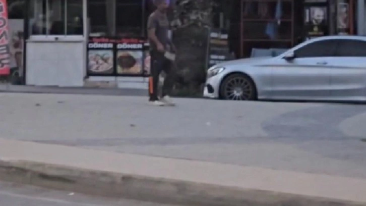 Öte yandan elinde satırla caddede dolaşan şahsın o anları cep telefonu kamerasına yansıdı.
