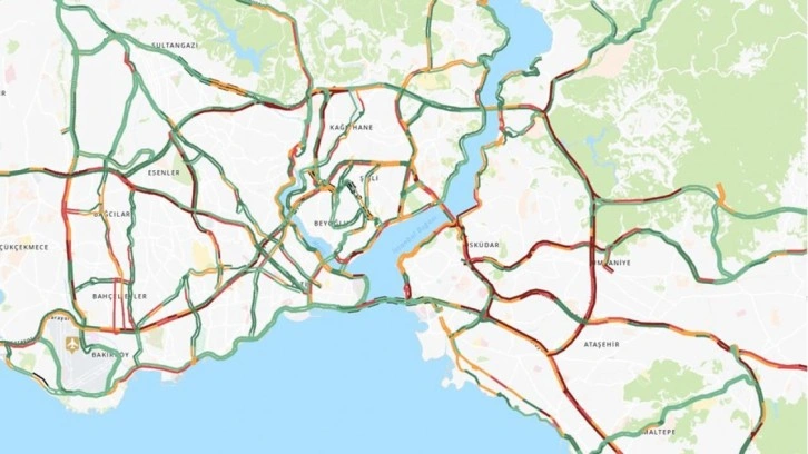 İstanbul Büyükşehir Belediyesi Trafik Yoğunluk Haritası'na göre, Anadolu Yakası'ndaki trafik yoğunluğu yüzde 83 olarak ölçülürken Avrupa Yakası'nda ise yüzde 67'ye çıktı.