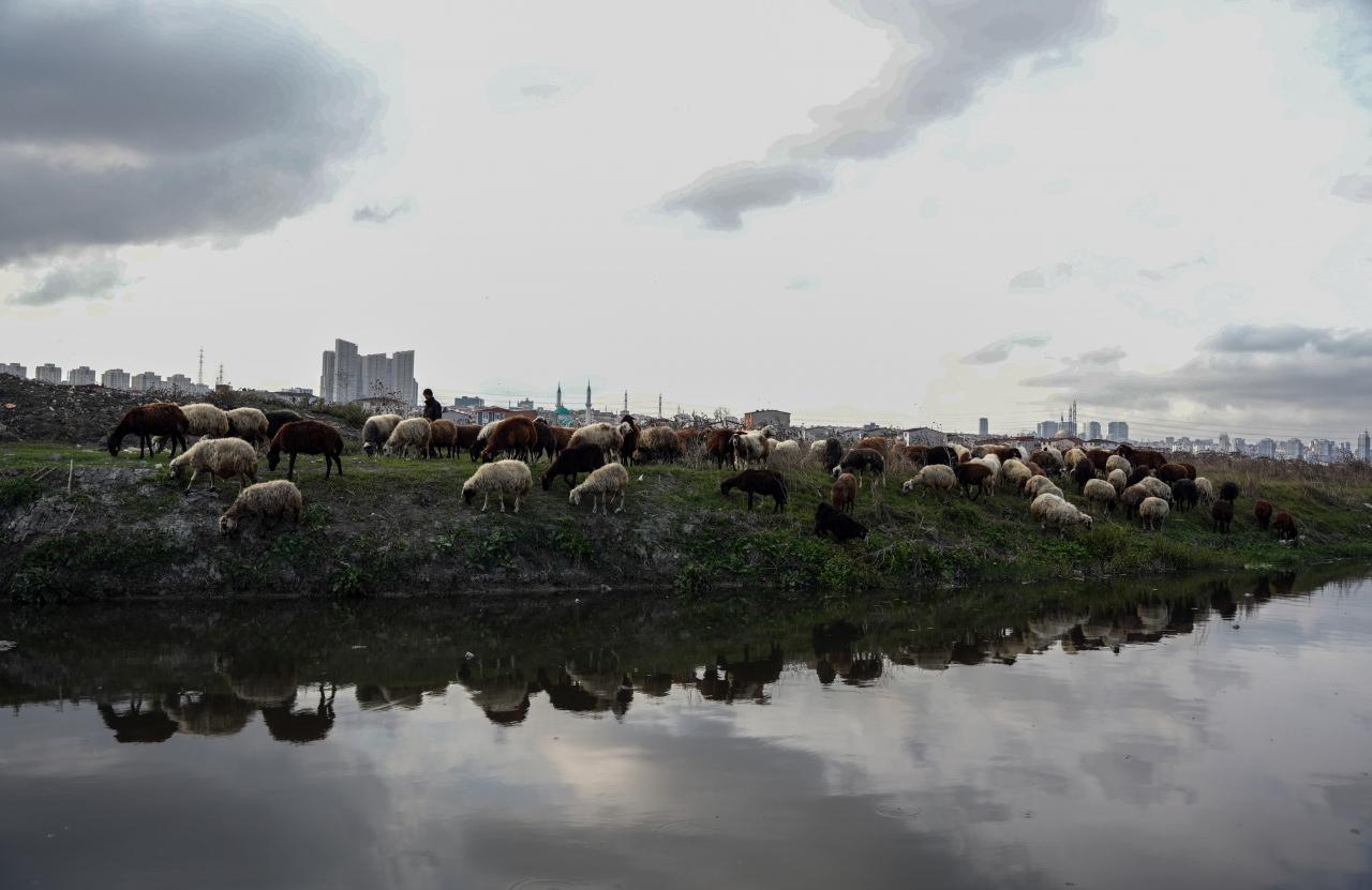 Temizlenmeyen dere çevresinde otlayan koyunlar da havadan çekilen görüntülere yansıdı.