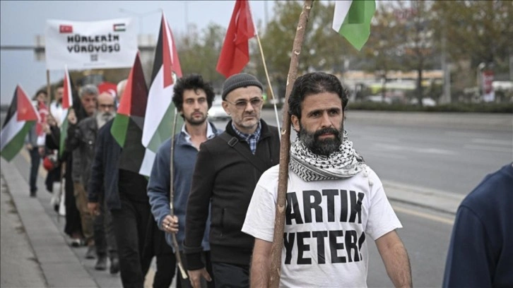 Kadıköy'den "Hürlerin Yürüyüşü" adıyla hareket eden, Ankara ve Hatay üzerinden 30 gün sonra Gazze'de olmayı planlayan şair ve yazar Mehmet Akıncı ile arkadaşları, yürüyüşün 12'nci gününde başkente vardı.