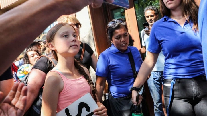 Thunberg, sosyal medya platformu X'ten "Bugün Filistin ve Gazze (Gazze Şeridi) ile dayanışma için grev yapıyoruz" paylaşımında bulundu.
