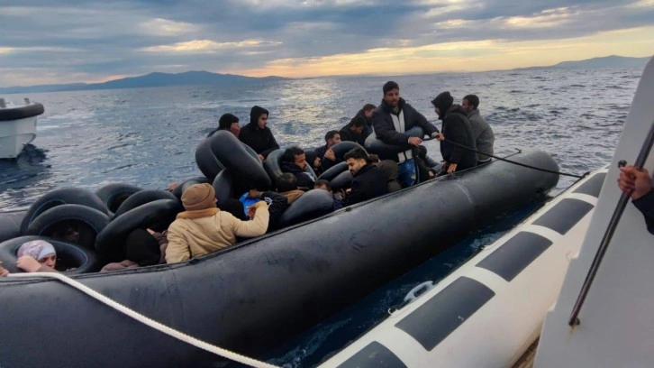 Bölgeye görevlendirilen Sahil Güvenlik ekiplerince durdurulan lastik botlardaki 17'si çocuk 62 düzensiz göçmen yakalanarak karaya çıkarıldı.