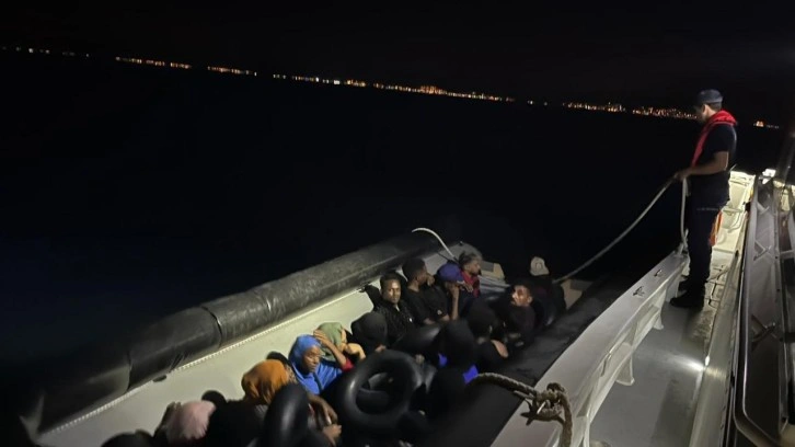 Bölgeye yönlendirilen sahil güvenlik botu tarafından durdurulan lastik bottaki 5'i çocuk 30 düzensiz göçmen yakalandı.