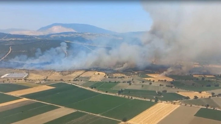 İhbarla bölgeye İzmir Orman Bölge Müdürlüğü'ne ait 5 uçak, 7 helikopter, 28 arazöz, 10 su ikmal aracı, 3 dozer sevk edildi. Ekipler, yangına havadan ve karadan müdahale ediyor.