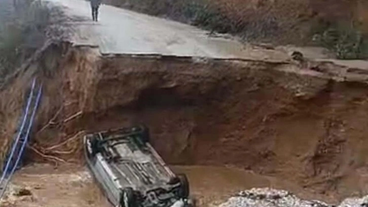 Çevredekilerin ihbarıyla bölgeye sağlık, jandarma ve belediye ekipleri sevk edildi. Düştüğü noktada ters dönen ve hasar gören otomobil, çekici ile çukurdan çıkarıldı. Ekipler, yolun onarılması için çalışma başlattı.