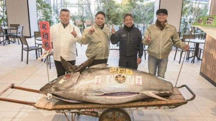 Japonya'nın başkenti Tokyo'da bulunan Toyosu Balık Hali, yeni yılda düzenlenen geleneksel balık mezatına ev sahipliği yaptı. Balıkçılar, Japonya ve dünyanın farklı bölgelerinden tutulan orkinos balıklarını en yüksek fiyata satabilmek için kıyasıya yarıştı. Bu yılki balık mezatında en yüksek fiyat ise Japonya'nın Aomori eyaletinde yakalanan ve 207 milyon yene (yaklaşık 1,3 milyon dolar) satılan 276 kilogramlık mavi yüzgeçli orkinos oldu.