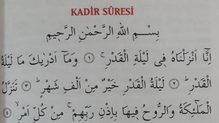 Kutsal kitabımız Kur'an-ı Kerim'in 97. suresi olan Kadir Suresi toplamda 5 ayet-i kerimeden oluşmaktadır. Sure'nin Mekke devrinde, Abese Suresi'nden önce, Şems Suresi'nden de önce indirildiği bilinmektedir.
