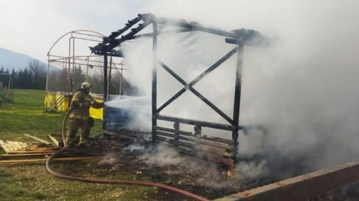 İnegöl ilçesi Deydinler Mahallesi’ndeki at binicilik kafesinin çocuk oyun alanında saat 16.00 sıralarında yangın çıktı.