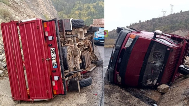 T.T. idaresindeki 28 TA 560 plakalı kamyonet, İsmetpaşa mevkisinde yol kenarındaki su kanalına devrildi.