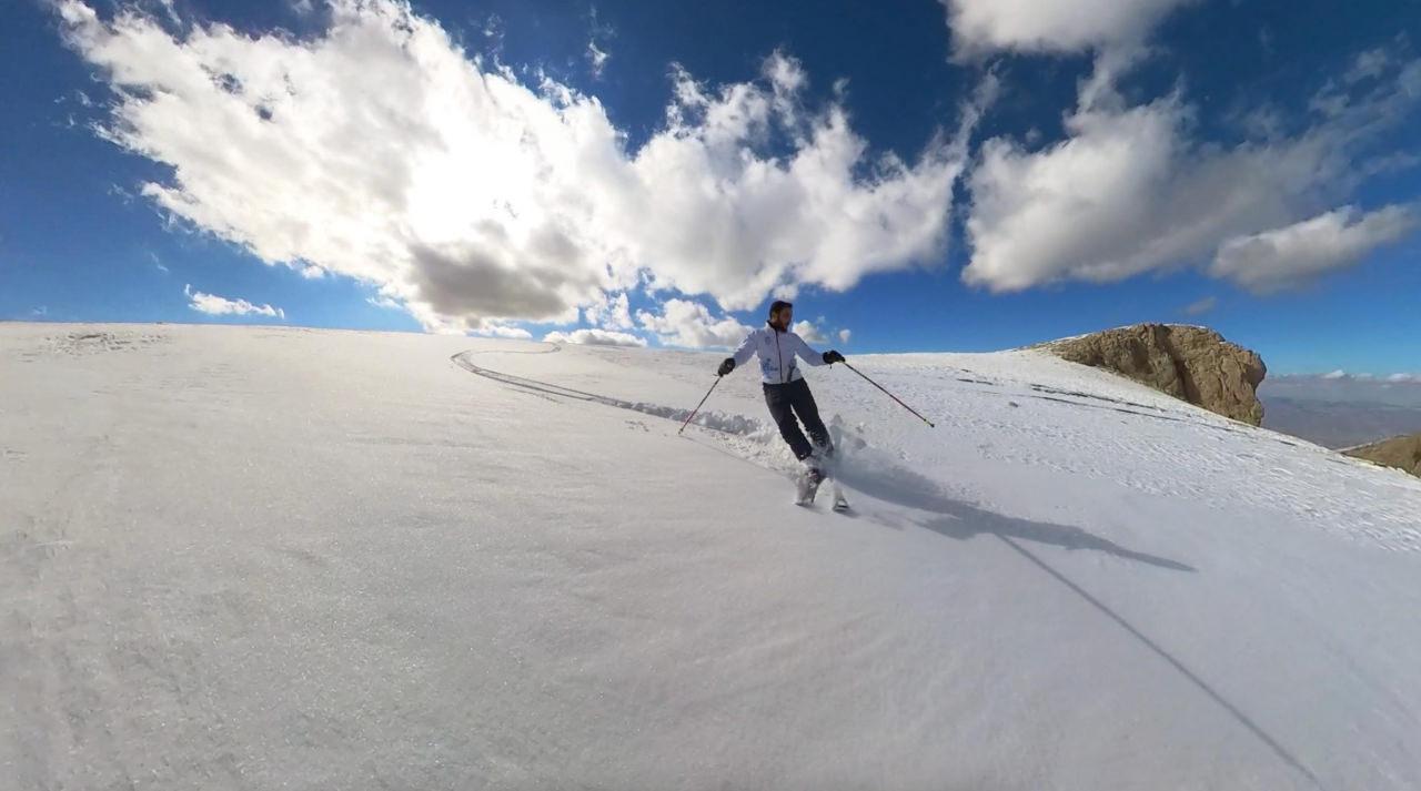 Kar kalınlığının yer yer 40 santimetreye ulaştığı Ergan Dağı'na çıkan Canser Atila ve Recep Sulu, hem kayak yaptı hem de motosikletleriyle tur attı. Erzincan'da geçen günlerde etkili olan yağmur, yüksek kesimlerde yerini kara bıraktı. Yoğun yağışın ardından Ergan Dağı Kayak Merkezi'nde kar kalınlığı yer yer 40 santimetreye kadar ulaştı. Dağın kayak yapmaya elverişli hale gelmesi üzerine, kayak antrenörü Canser Atila ve arkadaşı Recep Sulu, motosikletleriyle zirveye ulaştı. Ergan Dağı'nda sezonun ilk kayağını yapan 2 arkadaş, motosikletleriyle de beyaz örtü üzerinde tur attı. Adrenalin dolu anlarını dron ve kameralarla da görüntüleyen Atila ve Sulu, bu sene sezonun ilk kayağını geçen yıla göre daha erken yaptıklarını söyledi.