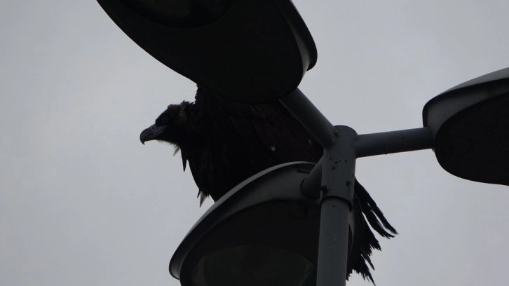 Sahilde bir müddet durduktan sonra aydınlatma direğine çıkan akbabaya kargalar saldırmaya çalıştı. Direk üzerinde bir süre bekleyen akbaba uçarak gözden kayboldu. Vatandaşlar ise o anları cep telefonu kamerası ile çekti.
