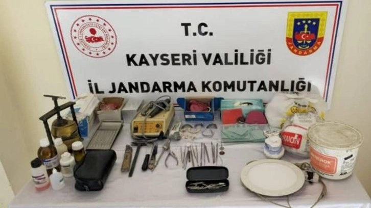 İl Jandarma Komutanlığı ekipleri, Melikgazi ilçesi Ağırnas Mahallesi'nde T.P.'nin izinsiz diş çekimi ve tedavisi yaptığı bilgisi aldı. Diploma veya belgesi olmadan izinsiz olarak muayenehane açtığı tespit edilen T.P., yapılan operasyonla yakalandı.