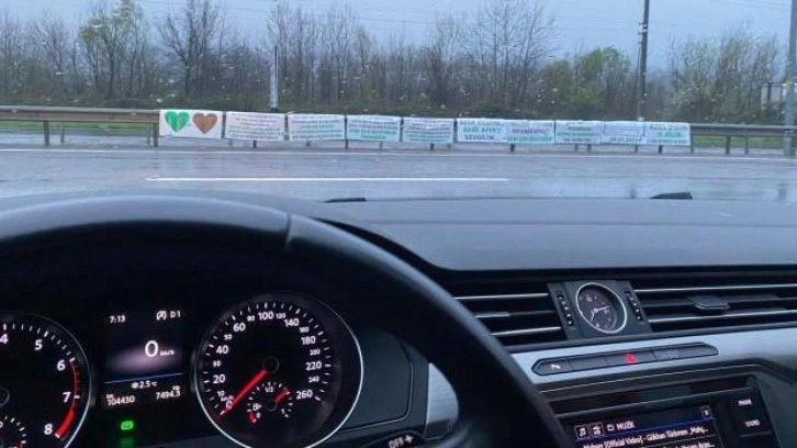 Yol kenarında uzanan pankartların üzerinde "Küçücük dünyamın kocaman hayali, seni çok seviyorum", "Özür dilerim beni affet sevgilim", "Hadi her şeyi boş verelim, kızımız Elisa’nın da mı hiç hatrı yok" gibi yazılar olduğu görüldü.