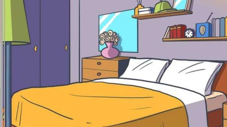 Yukarıdaki görselde her şey güzelce düzenlenmiş bir yatak odası bulunuyor. Ama bu düzenli yatak odasında buraya ait olmayan bir eşya bulunuyor. Söz konusu olan eşya bir taç. Görsel zekâ testinde bir yerlere gizlenmiş olan tacı 5 saniye içerisinde bulabilir misiniz?
