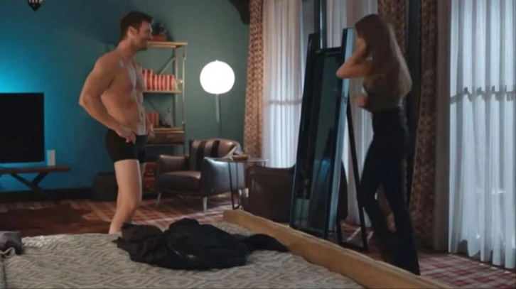 Dizide Kıvanç Tatlıtuğ'un oynadığı Aslan ile Serenay Sarıkaya'nın oynadığı Devin, yatak odasında tartıştı. O esnada Aslan üstünü değiştirmek için soyunmaya başladı. Devin'in kendisine baktığını gören Aslan "Yukarı bak yukarı" diye uyardı. Daha sonra üstünü değiştirmek için başka bir alana geçen Devin de aynı şekilde kendisini izleyen Aslan'ı "Yukarı bak yukarı" diye uyardı.