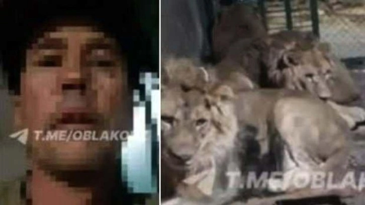 Özbekistan'ın Parkent şehrindeki "Lion Park" adlı özel hayvanat bahçesinde sabah saat 5'te aslan kafesinin kilidini açan F. Iriskulov adlı bakıcı, aslanlara yem oldu.