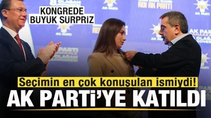 Bakan Yusuf Tekin, konuşmasının ardından AK Parti'ye geçen Kalkım Belediye Başkanı Zeynep Çelik'e parti rozetini taktı.