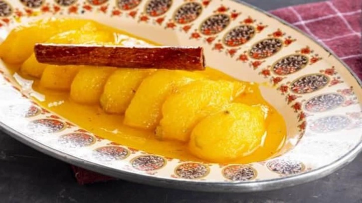 Malzemeler: 1 kg meyve (armut, ayva, elma, şeftali, vişne, kayısı) - Konya’da yaygın olarak armut kullanılır. 400 ml su, 170 gram beyaz şeker, 1 adet yıldız anason, 1 adet çubuk tarçın, 3 gram zerdeçal, 26 gram toz şeker (sos için)