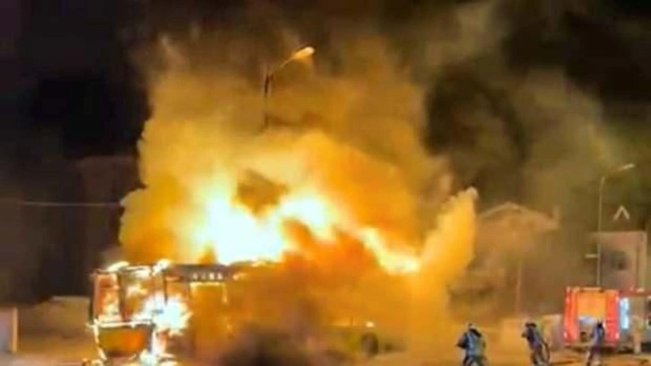 Öte yandan, otobüsün yandığı anlar çevredeki vatandaşların cep telefonu kamerasınca kaydedildi.