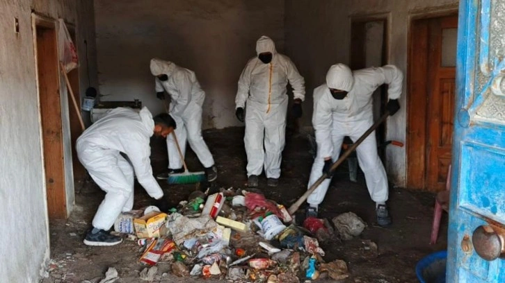 Adrese giden ekipler, kilolarca çöple karşılaştı. Ekipler, yaklaşık 1 kamyon dolusu çöp ve molozun çıktığı evi temizledi.