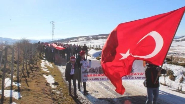 Saat 09:30'da Kumru Kaymakamlığı önünden başlayan Sarıkamış şehitlerine anma yürüyüşü Düzoba Yaylası Sarıkaya mevkiinde sona erdi.