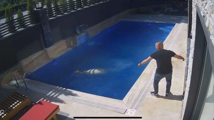 BİR VİLLANIN HAVUZUNA ATLADI