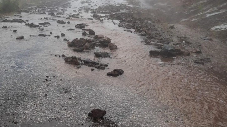 Kütahya’nın Tavşanlı ilçesinde aniden bastıran sağanakla birlikte dolu, Değirmisaz köyünde hayatı olumsuz etkiledi. Köy girişine taşan sel suları, beraberinde sürüklediği taş ve toprakla yolu kapattı.