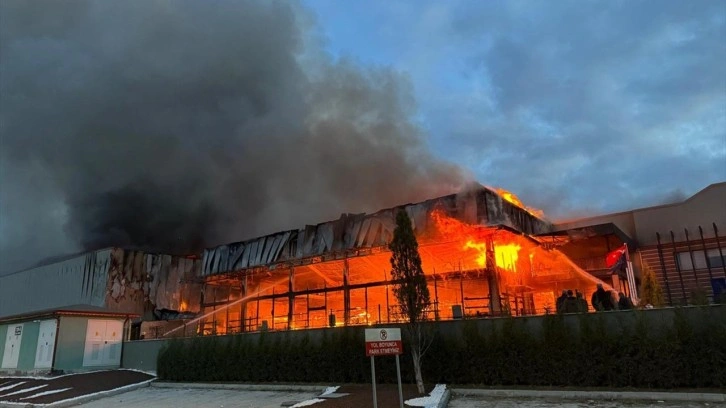 Kütahya'da porselen fabrikasında çıkan yangın kontrol altına alınmaya çalışılıyor.