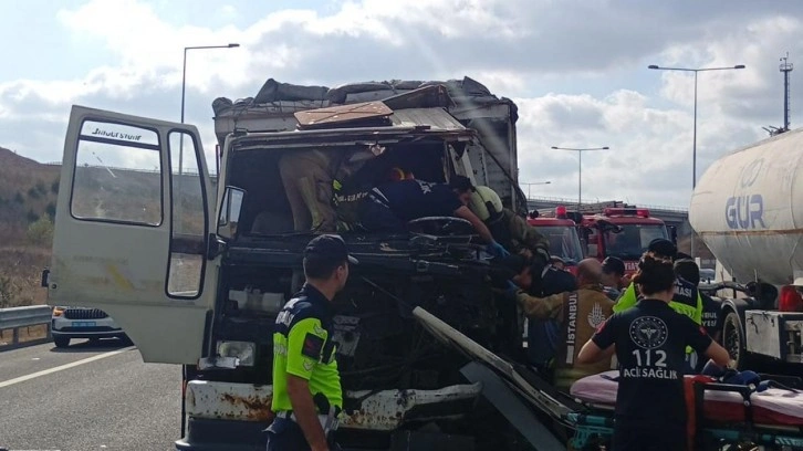 Son dakika kaza haberi: Kuzey Marmara Otoyolu Tepeören Mevkii'nde kamyonet TIR'a arkadan çarptı. Kamyonette sıkışan sürücüsüyü kurtarma çalışmaları sürüyor. :