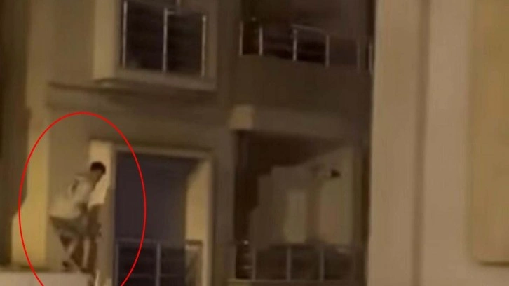 Polislerin merdiven aracıyla eve girmeye çalıştığını fark eden şüpheli, yakalanmamak için önce pencereden bitişikteki apartmanın balkonuna geçti, ardından da balkon korkuluklarına tırmanarak beş kat çıkıp çatıya ulaştı.