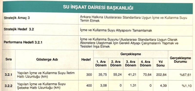 Yavaş’ın yönetimindeki Ankara Su ve Kanalizasyon İdaresi (ASKİ) verilerine göre, birçok altyapı projesinde hedeflerin oldukça gerisinde kalındı.