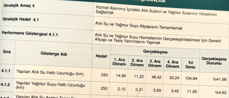 2024 faaliyet raporundaki bu veriler, Ankara’da altyapı yatırımlarının hedeflenen düzeyde ilerlemediğini ortaya koyuyor. Belgeler, ASKİ’nin resmî raporlarından alınmış durumda.