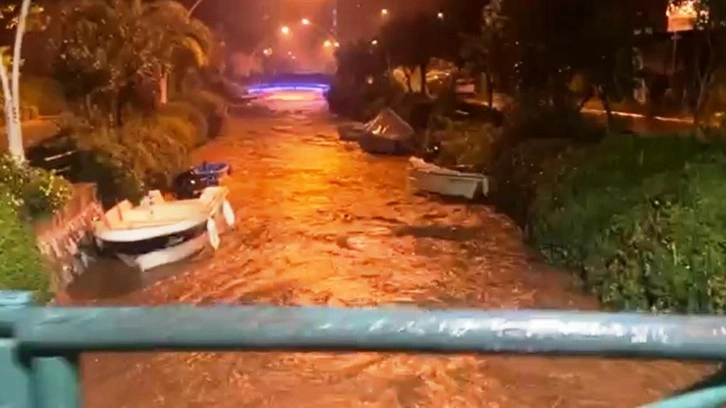 Yağışlarla birlikte Azmak Deresi'nin de debisi yükseldi. Yağışların sabah saatlerine kadar devam etmesi beklenirken, belediye ekipleri de su baskını yaşanan yerlerde çalışma başlattı.